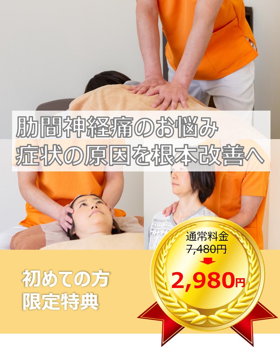 一般の接骨院、整体院などでは、肋間神経痛の症状だからと簡単に聞くのみで、すぐに施術に入ります。軽症な場合やたまたま施術箇所が当たっていれば良くなりますが、多くの場合は、そうはなりません。
