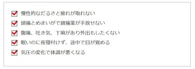 • 代表的な症状: 全身の倦怠感、めまい、頭痛、動悸、不眠、イライラなど、多岐にわたる症状がイラストでまとめられています。